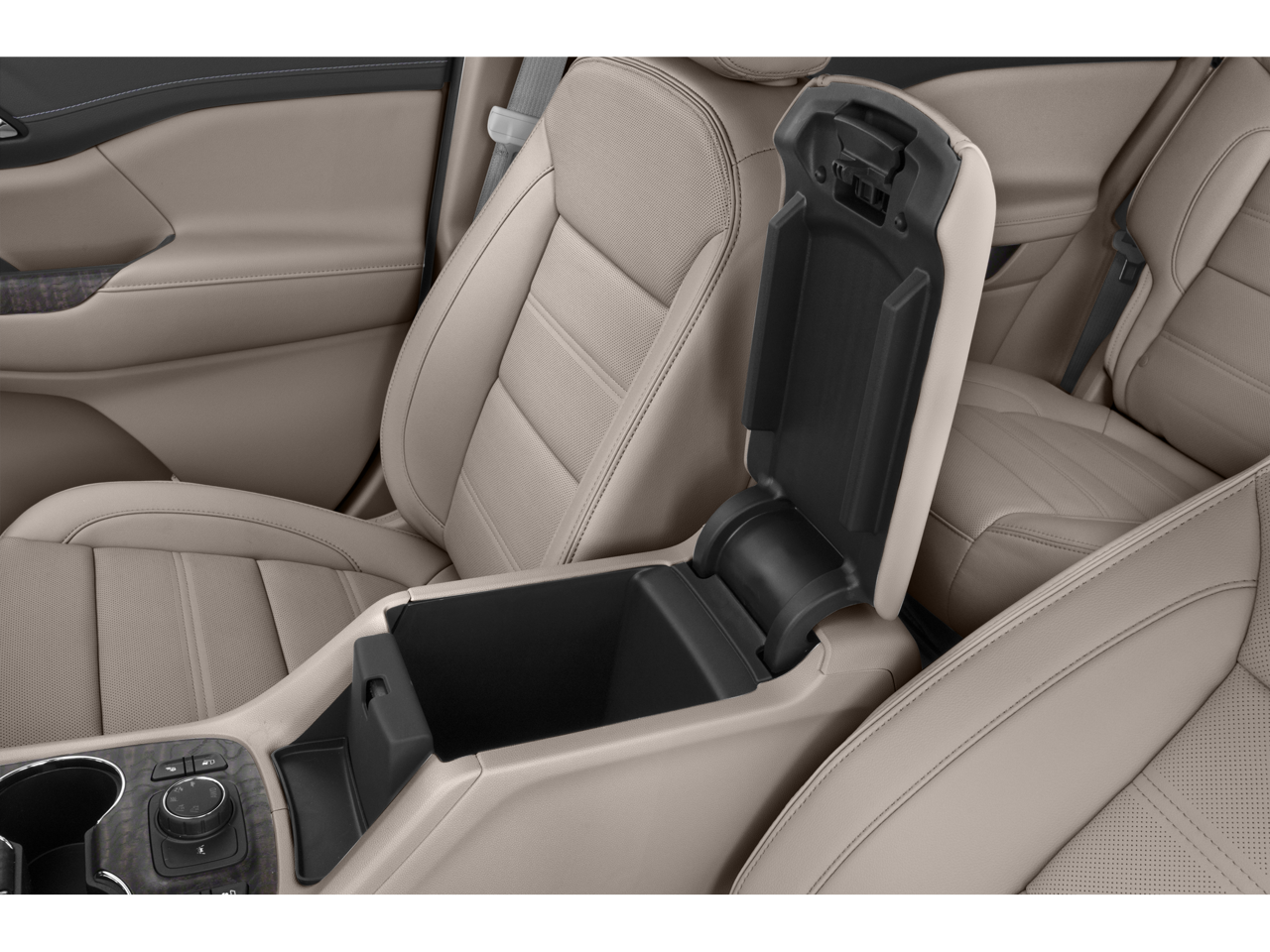 - Console, front center with 2 cup holders and storage, includes rear storage drawer